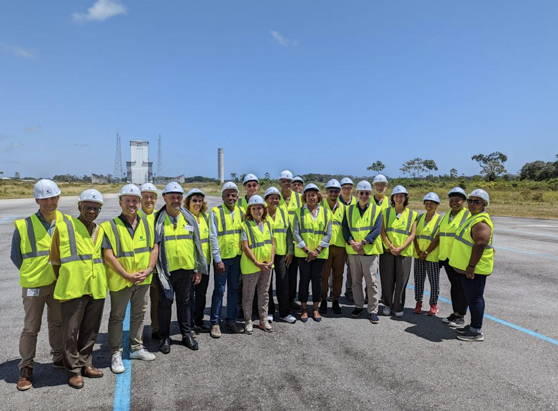 Eric Chevée, Président des Ceser de France, Julien Bluteau Délégué Général des Ceser de France, Patrick Care de Bretagne, Marie-Jeanne Nicoli et Patrice Bossart de Corse, Laurent Degroote et Jean-Baptiste Konieczny des Hauts de France, Dominique Vienne et Maryvonne Quentel de la Réunion, Abdou Soimadou Dahalani et Nabilou Alibacar de Mayotte, Emmanuelle Fourneyron et Wilfried Grounon de Nouvelle Aquitaine, Jacques Bodreau du Pays de la Loire, Julien Gumb et Sébastien Culetto de Saint-Martin, Phillipe Villard et Catherine Jean Baptiste de Martinique, ont débuté la journée avec une visite du Centre Spatial Guyanais, où ils ont été accueillis par Mme Marie Josée Gaultier, qui représentait la direction.