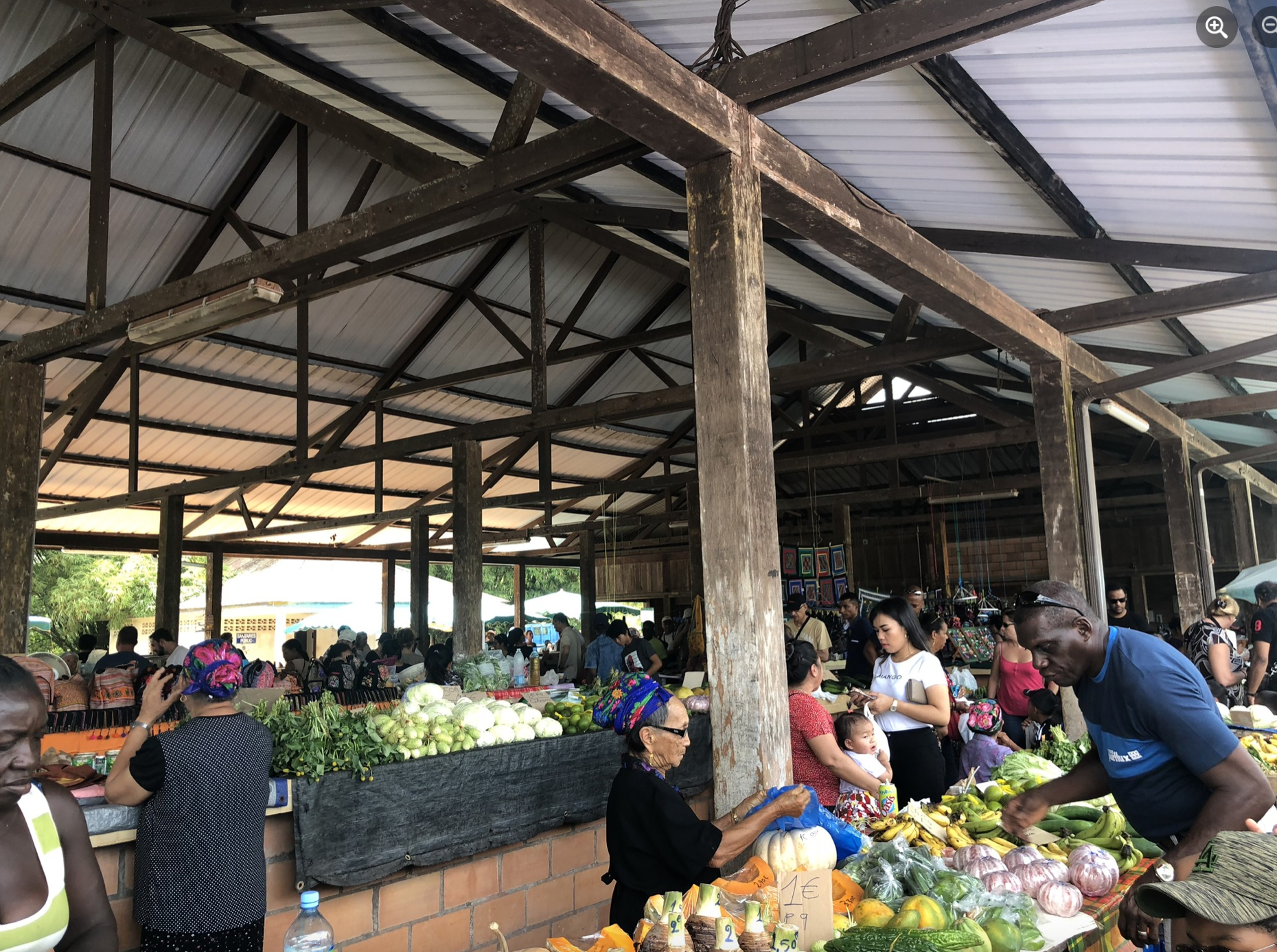 Dernière journée pour la délégation qui achève sa tournée en Guyane avec une visite du marché de Cacao, l’un des premiers fournisseurs de produits maraîchers de Guyane.