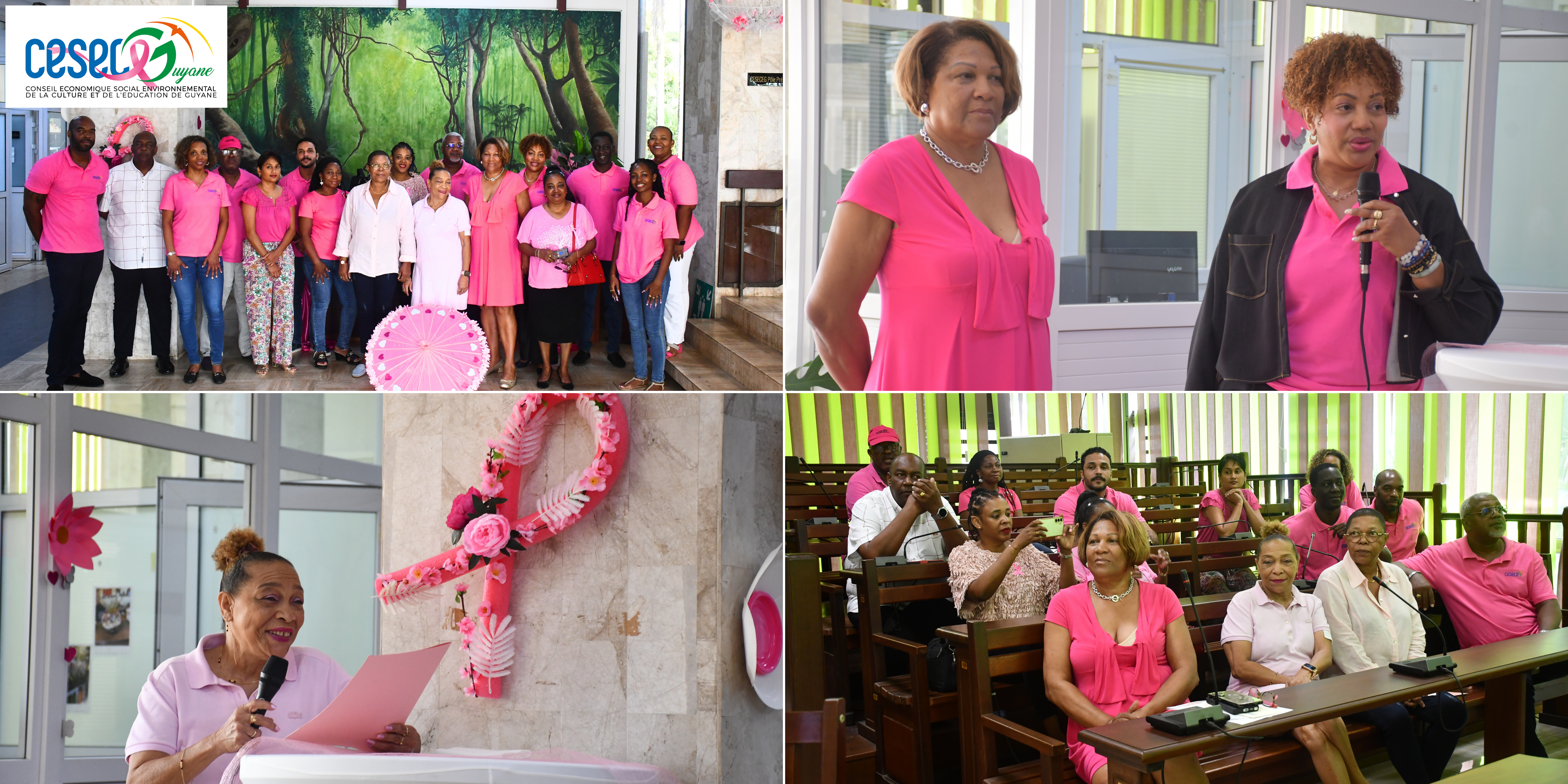 Comme le disait Alphonse Ringuet, « Nous sommes tous en rémission », une phrase qui résonne pleinement pour le CESECE Guyane, uni autour de la solidarité et de l’humain. Pour célébrer ce moment, un petit-déjeuner convivial a été organisé dans le hall d’accueil décoré en ce mois particulier, en présence de Karine Rimbert-Eugène et de Christiane Griffith de la CTG, ainsi que de la sœur de Mireille.